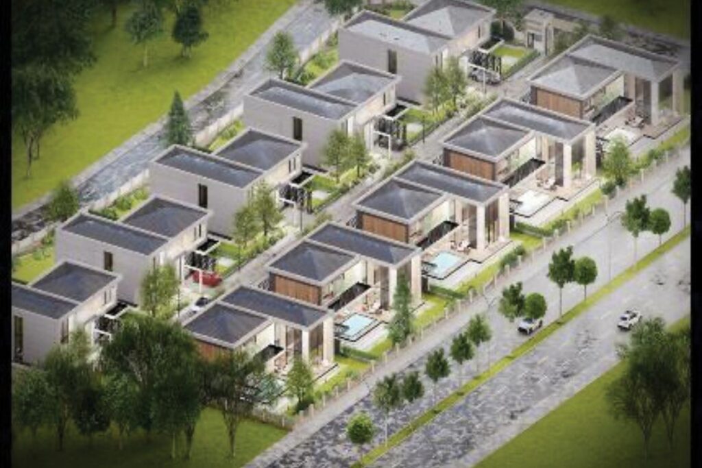 The MCHAN MOGAN project consists of 10 ultra-luxury villas, each with a usage area of 360 m², built on a total land area of 8,140 m². The villas include private gardens and dedicated parking areas for each unit. Distances to key locations are as follows: