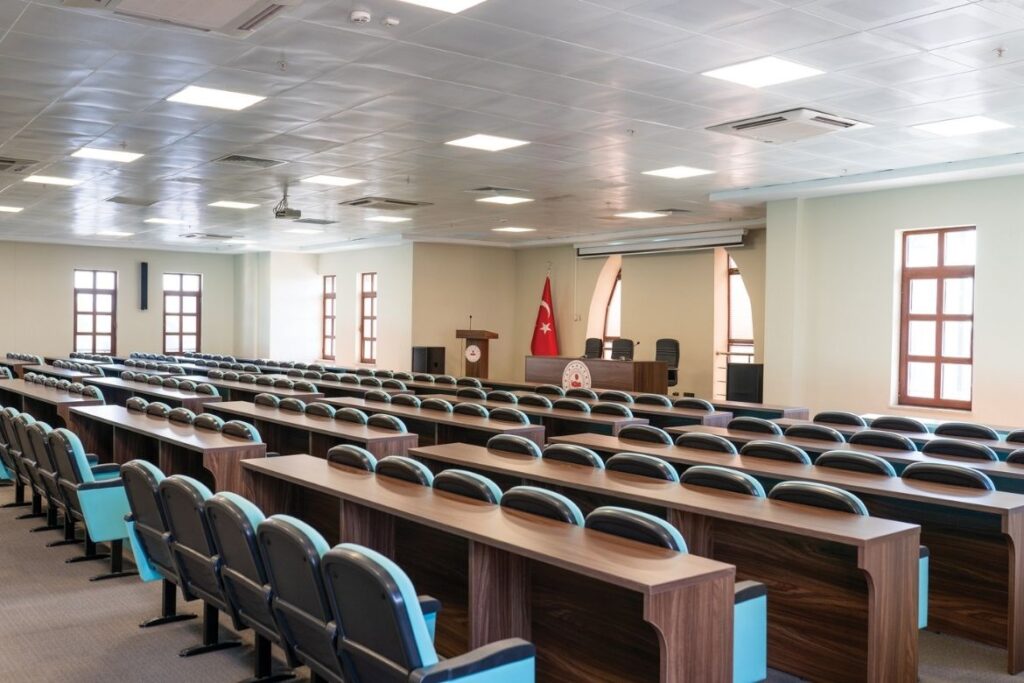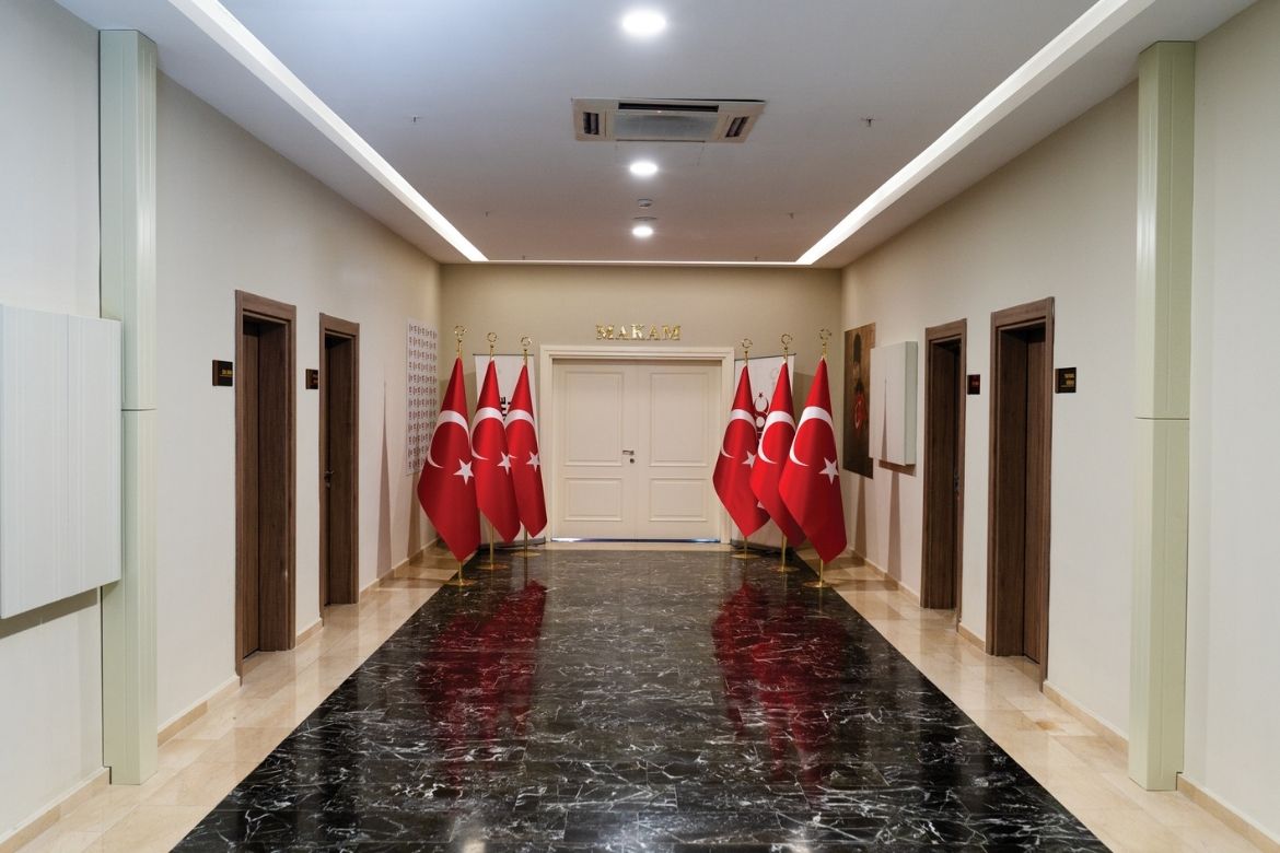 The project consists of a five-story building with a total construction area of 11,000 m2. The building includes an underground parking garage, a public health centre, various government directorates, meeting and conference halls, exhibition spaces, and administrative offices for the district governorate.